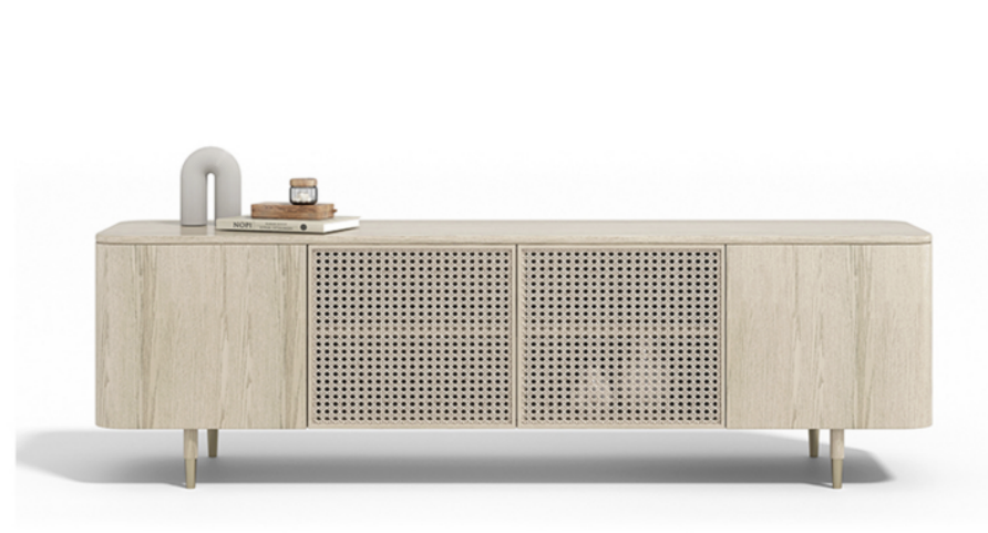 Rattan design; easy to assemble; durable materials with solid wood cabinet legs.